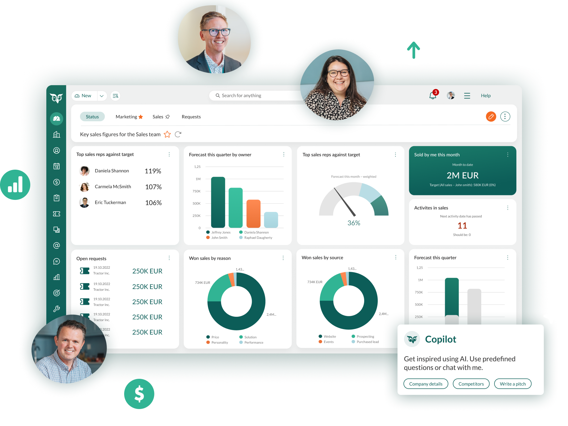 • Verbessern Sie Ihre Abschlussquoten durch Zugriff auf präzise Daten und vollständige Transparenz in Ihrem Vertriebsprozess
